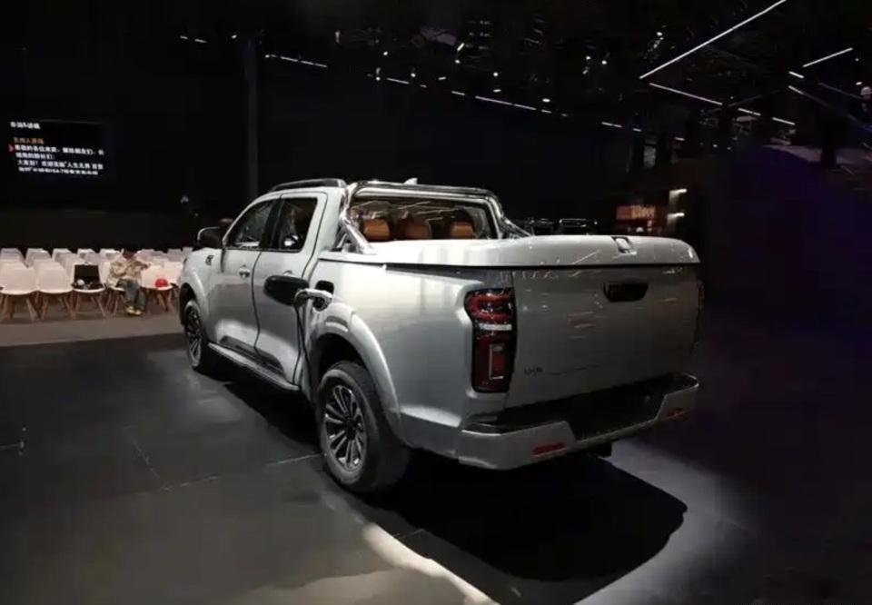 车身尺寸方面,新车长宽高分别为5416/1947/1886mm,轴距3230mm,定位中型皮卡,超长轴距不仅提升了车内驾乘空间,更保障了车身行驶稳定性;货箱尺寸为1520/1520/540毫米,货箱容积充裕,搭配货箱锚点与挂钩,可灵活装载货物、户外露营装备等,兼顾商用运输与户外休闲需求。车尾采用经典的货箱设计,配备LED尾灯与后保险杠,支持平开和对开两种开启方式,实用性拉满,车尾右下角新增“Hi4-T”专属标识,凸显其架构专属身份。