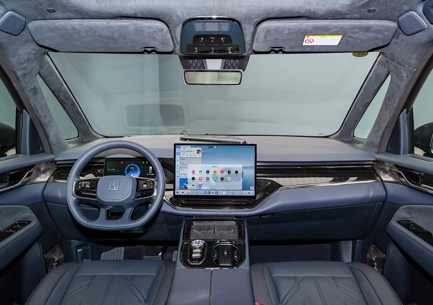 进入车内,内饰是焕新核心,延续对称式豪华布局,材质与配置全面升级,配备16 英寸 3.5K Mini-LED 中控屏 + 全液晶仪表 + AR-HUD,三屏联动科技感十足,车机搭载高性能芯片,操作流畅无卡顿。核心亮点为二排双零重力座椅,标配 22 点位按摩、通风 / 加热、四向自适应腰托,堪比头等舱。七座齐家版二排支持180° 旋转,搭配 17 英寸 OLED 吸顶屏,形成移动客厅对坐模式。六座行政版为独立 Sofaro 头等舱座椅,带电动腿托与真皮桌板,商务属性拉满。3205mm 轴距带来越级空间,三排座椅均标配电动调节、通风 / 加热,满载 7 人也舒适不局促。后备箱常规容积 590L,放倒三排拓展至 1295L。