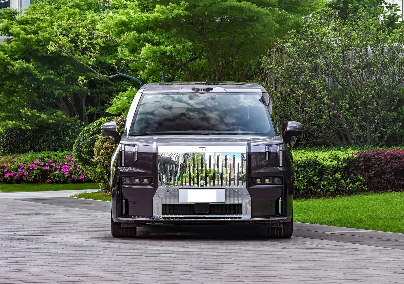 我们首先来看新车的外观设计方面,焕新极氪009的车头设计依旧极具辨识度,标志性的高山飞瀑格栅得以保留,大面积镀铬装饰搭配154颗LED光源组成的贯穿式灯带,营造出强大的气场,彻底摒弃了传统MPV的保守风格。新增的流水式垂直灯带与格栅灯、日行灯平行呼应,共同构成全新智能交互灯组,可根据场景显示不同灯语,科技感十足。灯带下方的智能充电口指示灯系统,会在充电时呈现呼吸式律动,实现了人车交互的直观化。车顶集成的激光雷达与辅助驾驶状态指示灯(小蓝灯),进一步凸显了其智能属性。